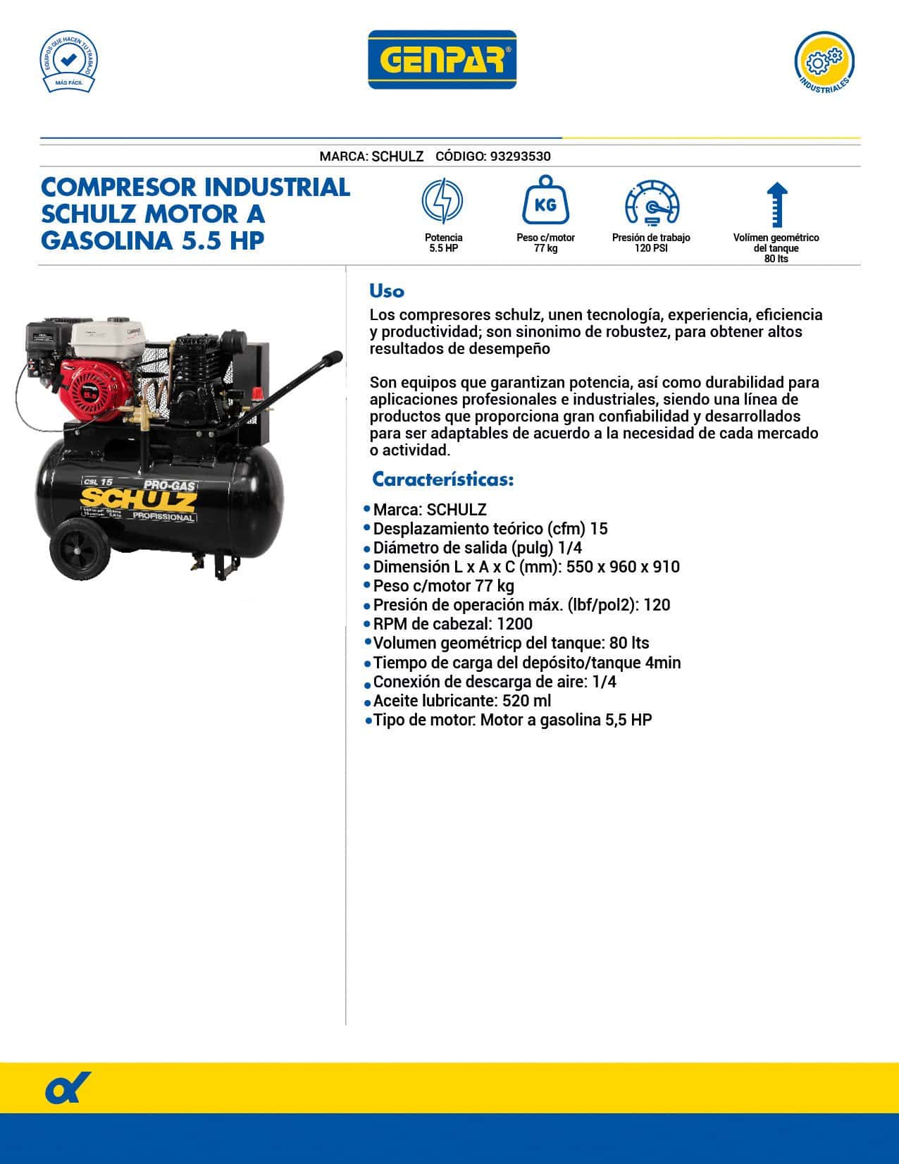 Los compresores schulz, unen tecnología, experiencia, eficiencia y productividad; son sinónimo de robustez, para obtener altos resultados de desempeño. Son equipos que garantiza potencia, así como durabilidad para aplicaciones profesionales e industriales; siendo una línea de productos que proporciona gran confiabilidad y desarrollados para ser adaptables de acuerdo a la necesidad
