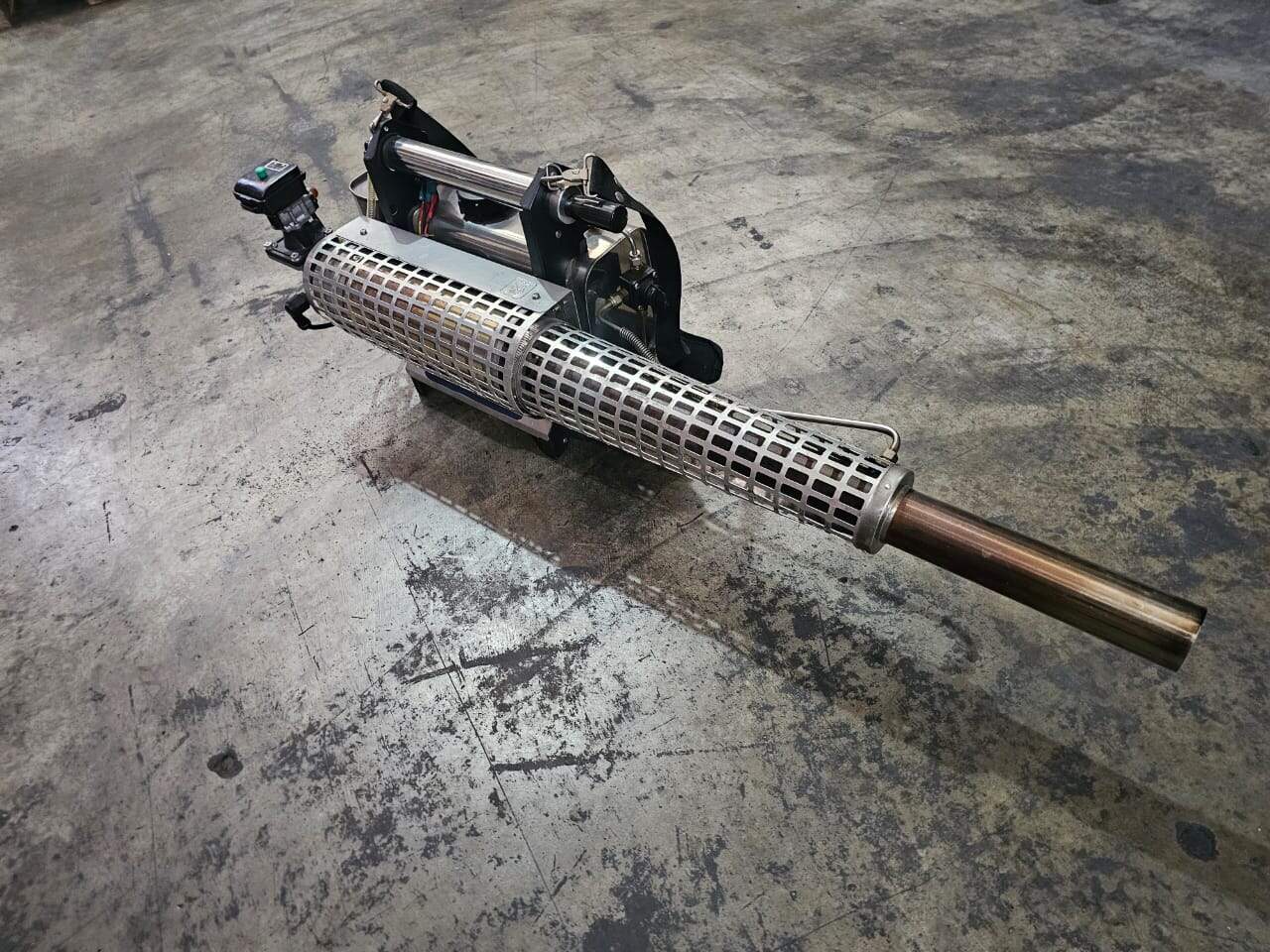 Limpia bomba de humo para aplicaciones industriales y minería, fabricada en acero inoxidable, con diseño compacto y resistente, ideal para trabajos pesados y duraderos en diferentes entornos.